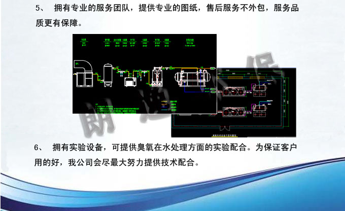 所有臭氧發生器采用一體化安裝,體積緊湊而不減少配套工序,保證設備的運行穩定性。采用氧氣法制取,保證臭氧濃度,增加了臭氧與水的混合效率。氣源部分使用了低溫干燥及加熱干燥技術,增加了設備的耐潮性能。設備自身設置多重自動保護功能,充分保障設備的穩定運行能力。系統設備一體化安裝,設備安裝調試方便、快捷。
